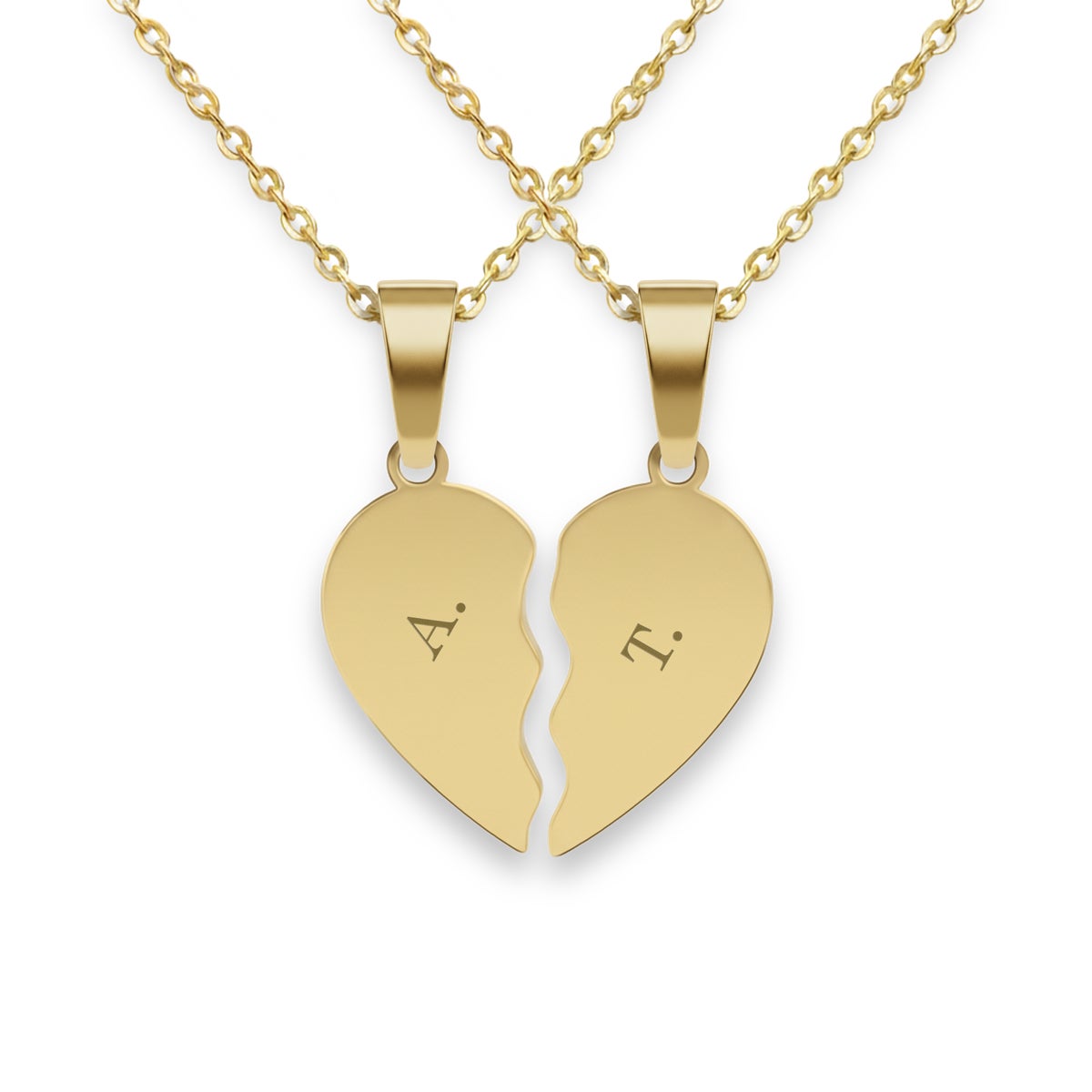 Gepersonaliseerde ketting met gebroken hart, met op elke helft de initialen die jij kiest. Inclusief twee bijpassende kettingen van 45 cm!